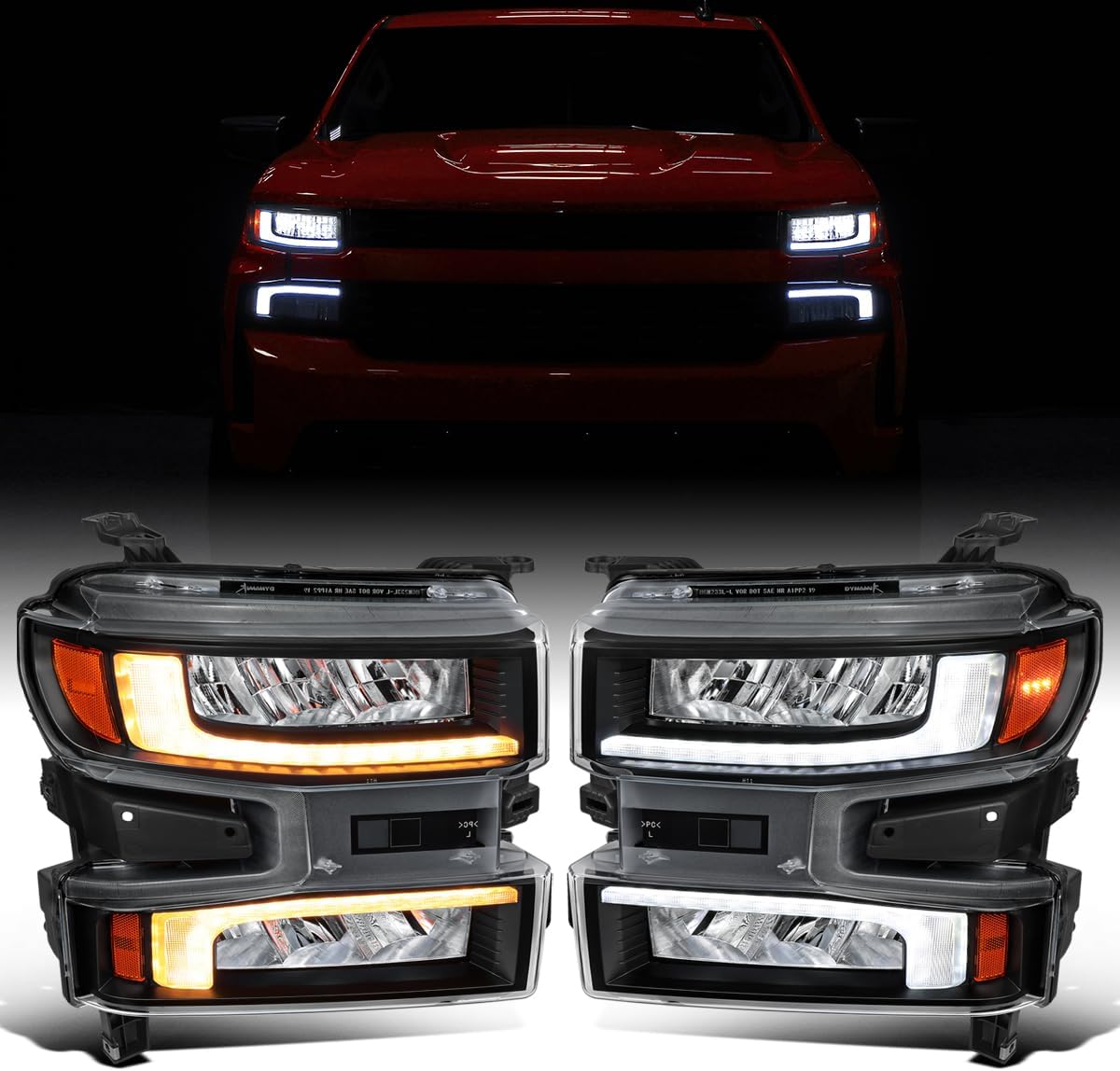 Ronnin - Fits 2019-2021 Chevy Silverado 1500 '22 Silverado 1500 LTD Upgraded Full LED Headlights Switchback Sequential Turn Signals + Animated Startup Effect Pair | Black