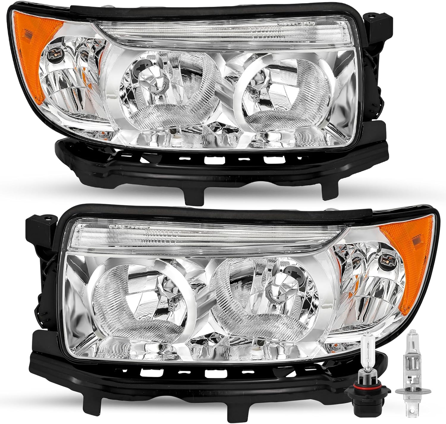 SOCKIR Headlight Assembly Compatible with 06 07 08 Subaru Forester / 2007-2008 Subaru Forester w/o Sports Package Headlamp w/Bulbs (Chrome Housing)