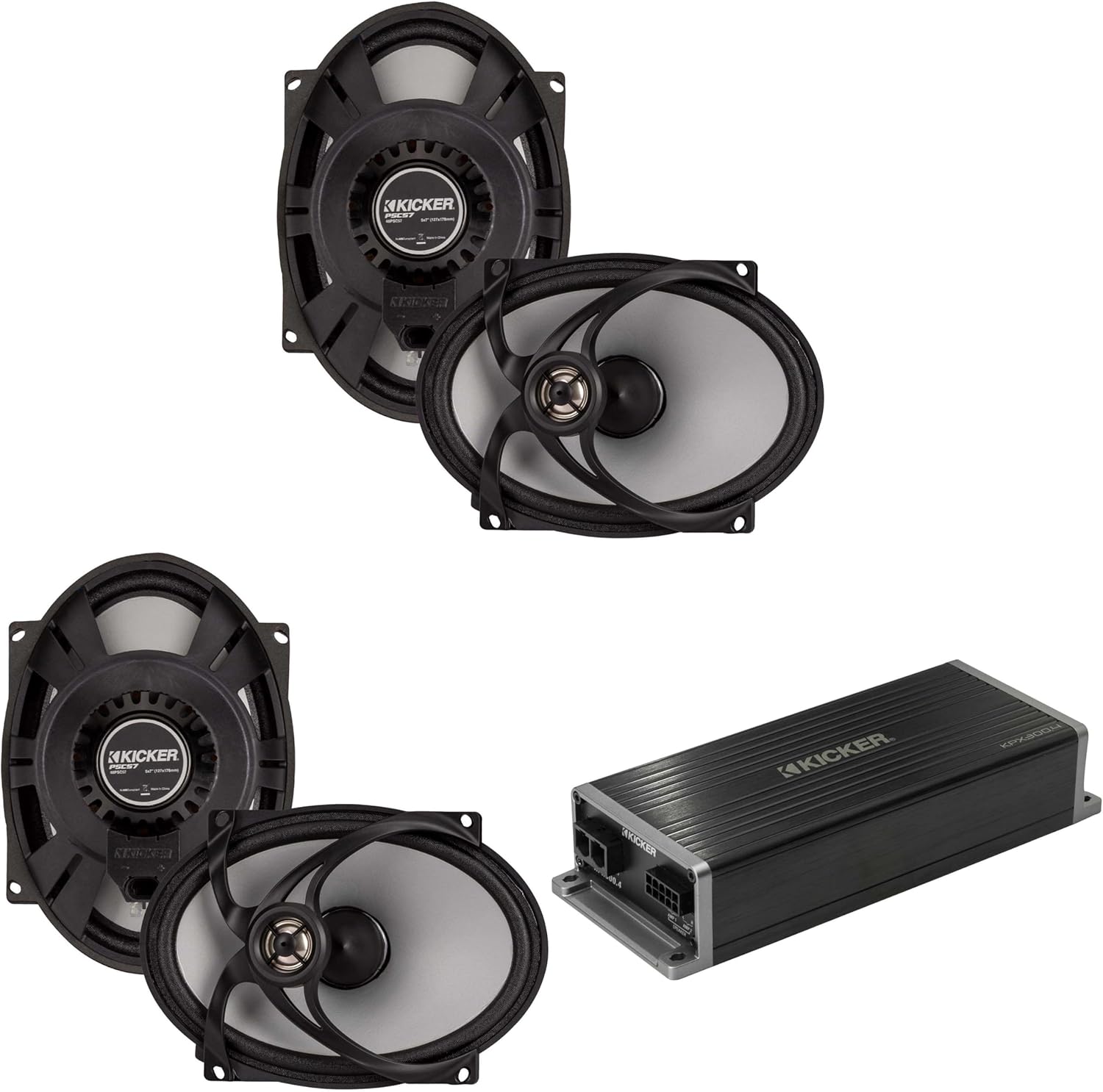 KICKER Marine KPX300.4 Powersports & Motorcycle Amp & (2) 5x7 Speakers (2 Ohm)