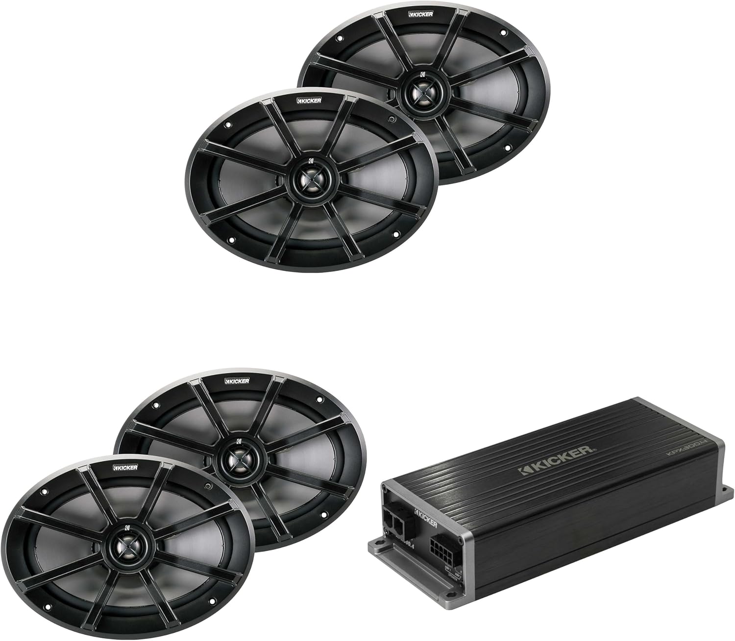 KICKER Marine KPX300.4 Powersports & Motorcycle Amp & (2) 6x9 Speakers (4 Ohm)