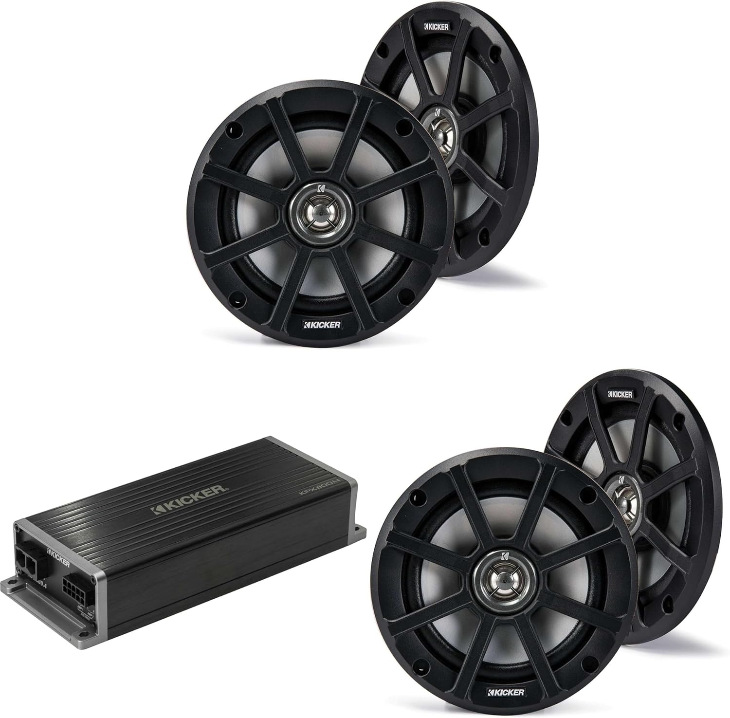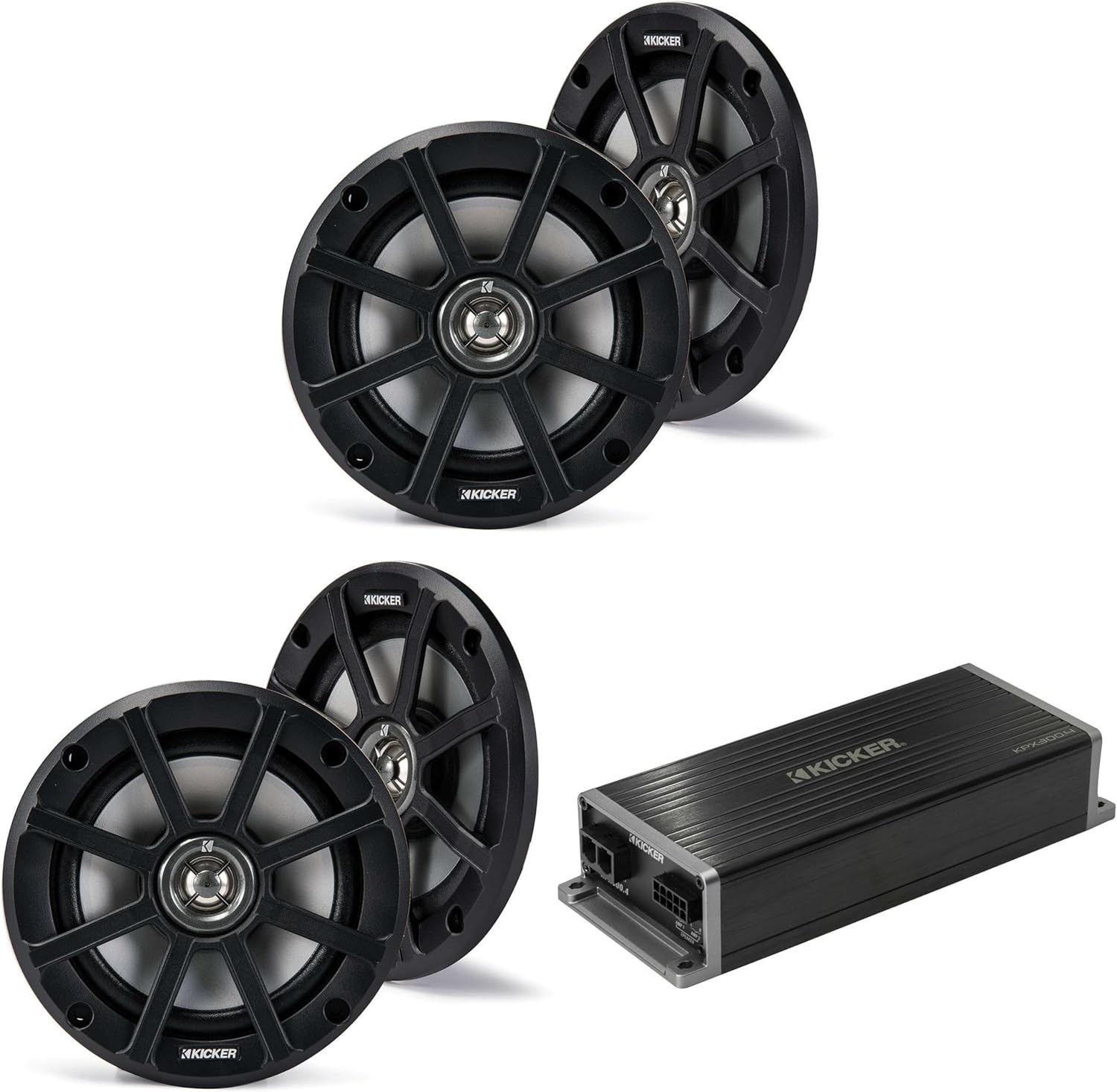 KICKER Marine KPX300.4 Powersports & Motorcycle Amp & (2) 6.5" Speakers (4 Ohm)