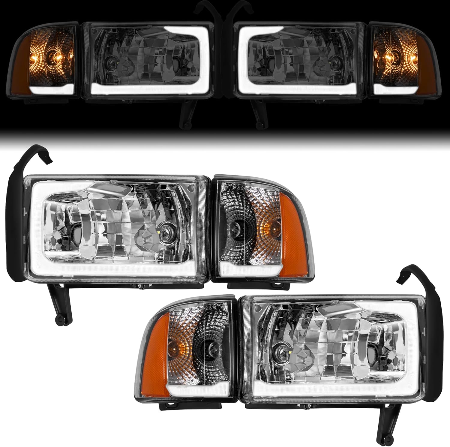 Teplo 300% Brighter W/Led Bulbs LED DRL Headlights Assembly Fit for 1994-2001 Dodge Ram 1500/1994-2002 Dodge Ram Pickup 2500 3500 (Chrome Housing Amber Reflector-LT, LED DRL)