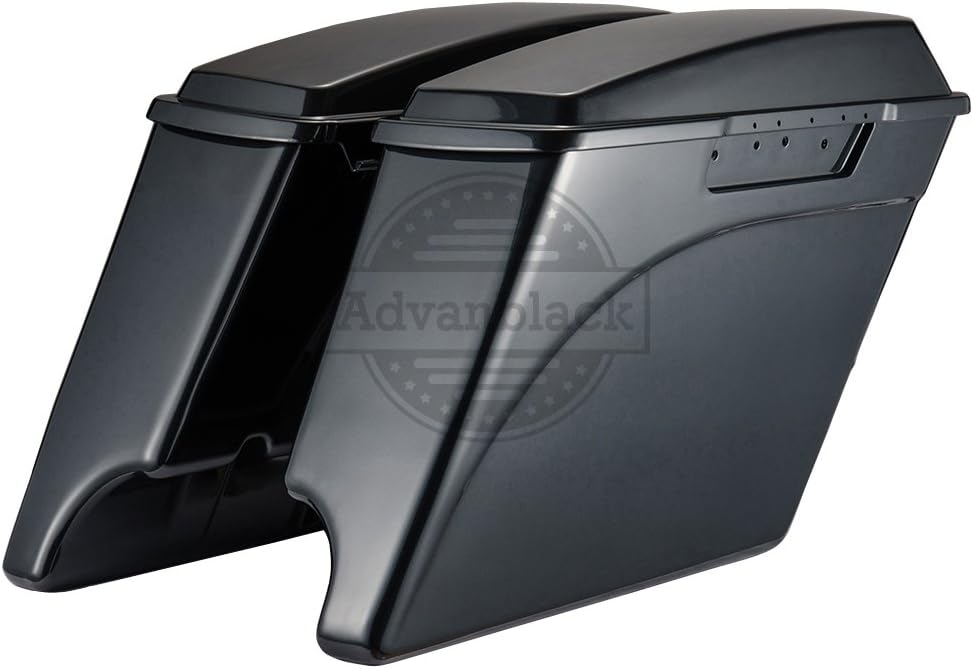 Moto Onfire Stretched Hard Saddle Bags, Black Pearl, 4 1/2 inch Saddlebags, Lids Fit for Harley Touring, Road Glide, Street Glide, Road King, Electra Glide, 1994-2013