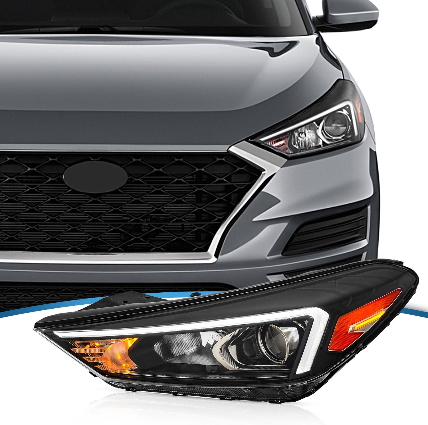 UPGRADE Compatible with 2019-2021 Hyundai Tucson Headlight With Halogen Bulbs & LED Daytime Running Lamp 92101-D3650(Driver Side)