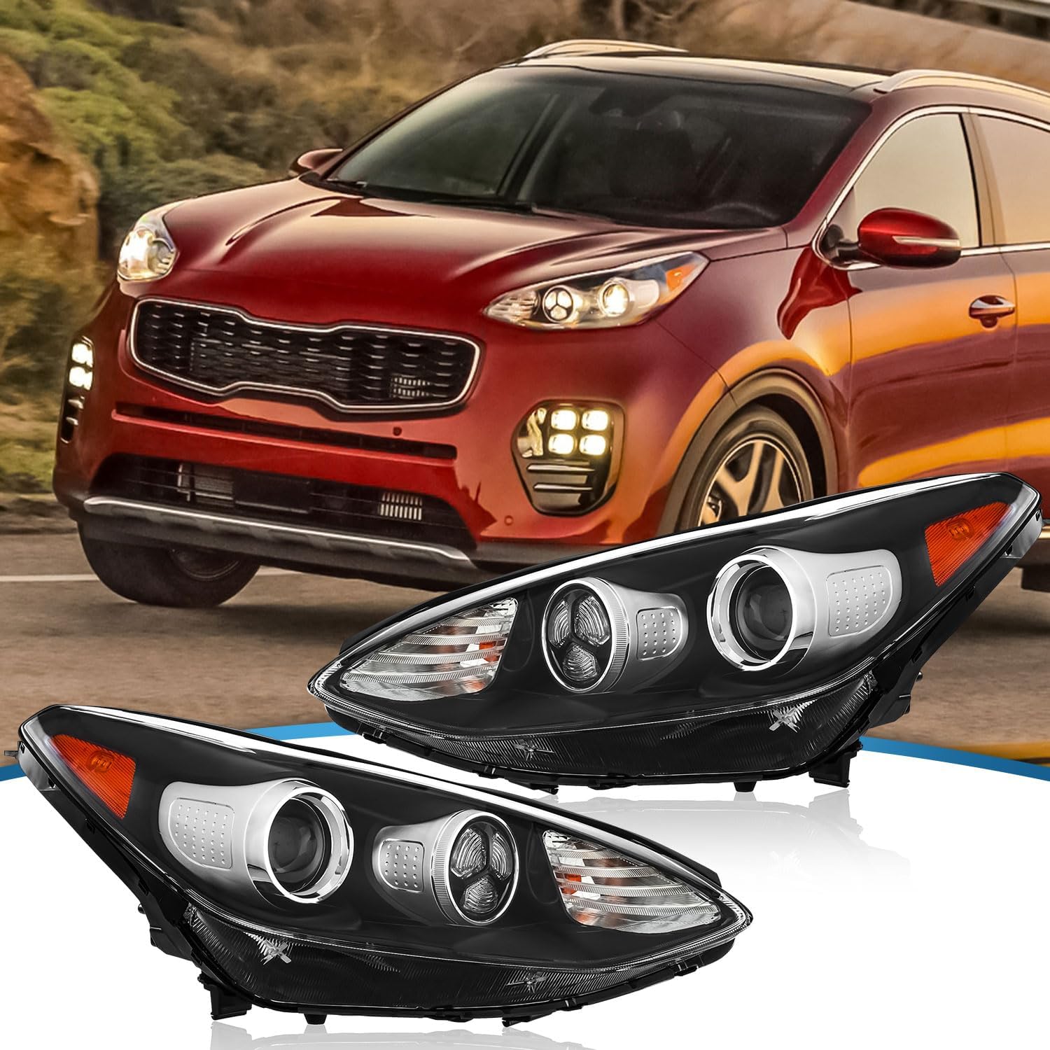 UPGRADE Compatible with 2017-2022 Kia Sportage AWD/4WD Headlight Halogen Type with LED Daytime Running Lamp 92101-D9140 92102-D9140(Driver & Passenger Side)