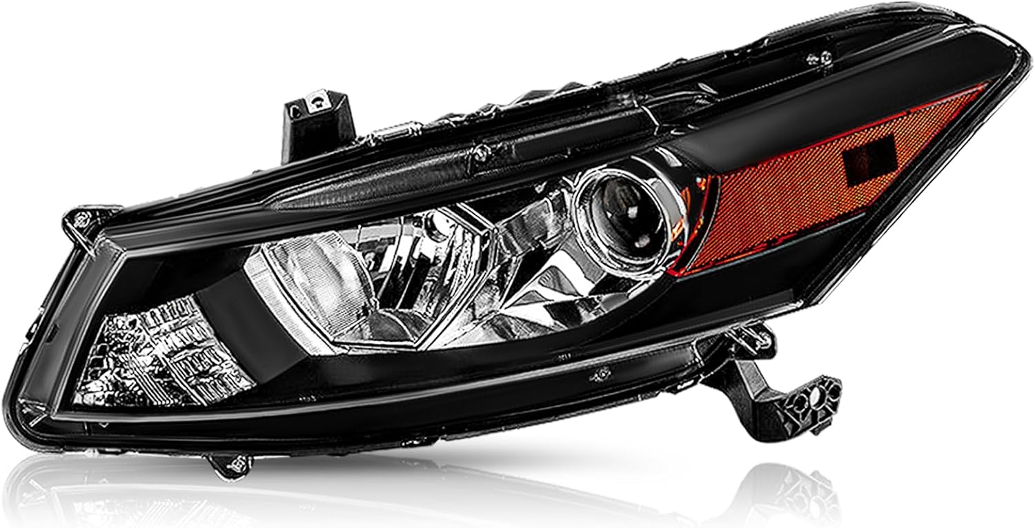 Headlight Assembly Compatible with 2008-2012 Honda Accord 2-Door Coupe Projector Headlamp Black Amber, LH