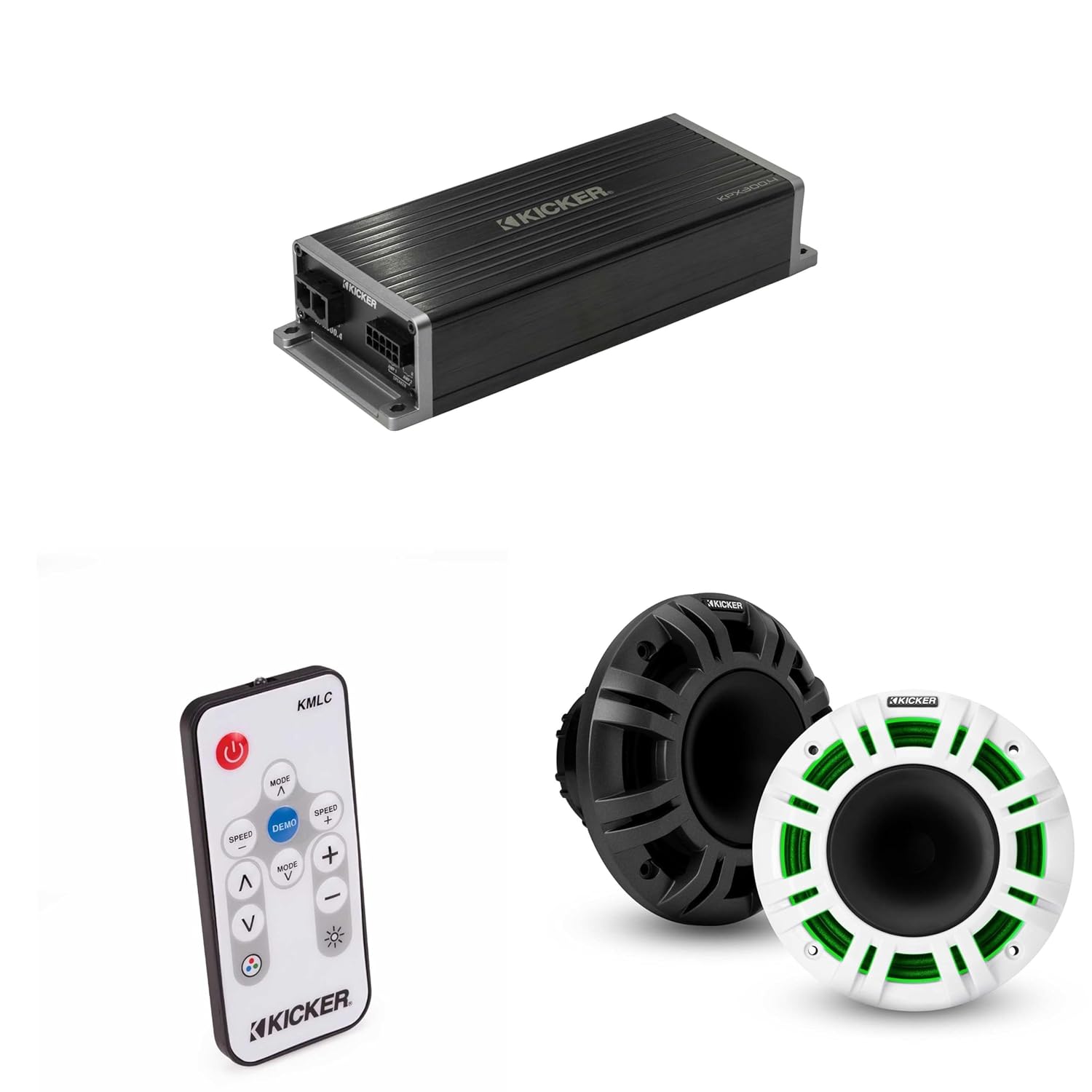 Kicker Marine KPX300.4 Powersports Amp & 6.5" HLCD Marine LED Speakers (Includes LED Remote)