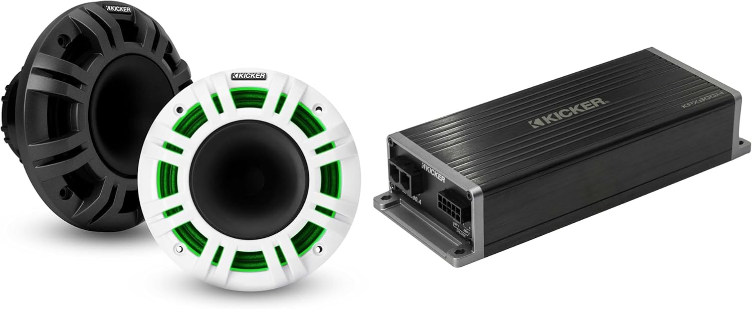 Kicker Marine KPX300.4 Powersports Amp & 6.5" HLCD Marine LED Speakers