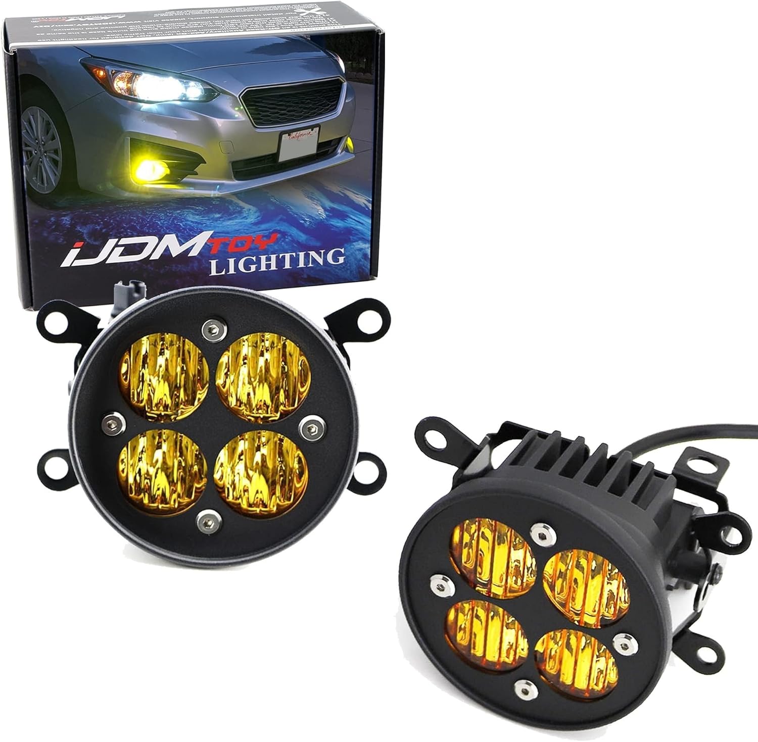 iJDMTOY Yellow Lens 24W High Power LED Wide Angle SAE Flood Beam Fog Light Kit w/Built-On Mounting Brackets Compatible With Subaru WRX STI XV Crosstrek Impreza BRZ Forester, etc