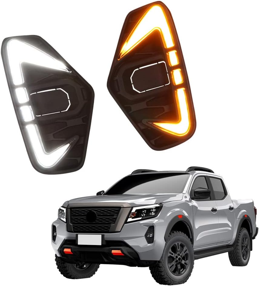 LED Daytime Running Light 2pcs for Nissan Navara NP300 2020 2021 NP300 Frontier Bumper Scanning DRL & Streamer White Yellow Turn Signals