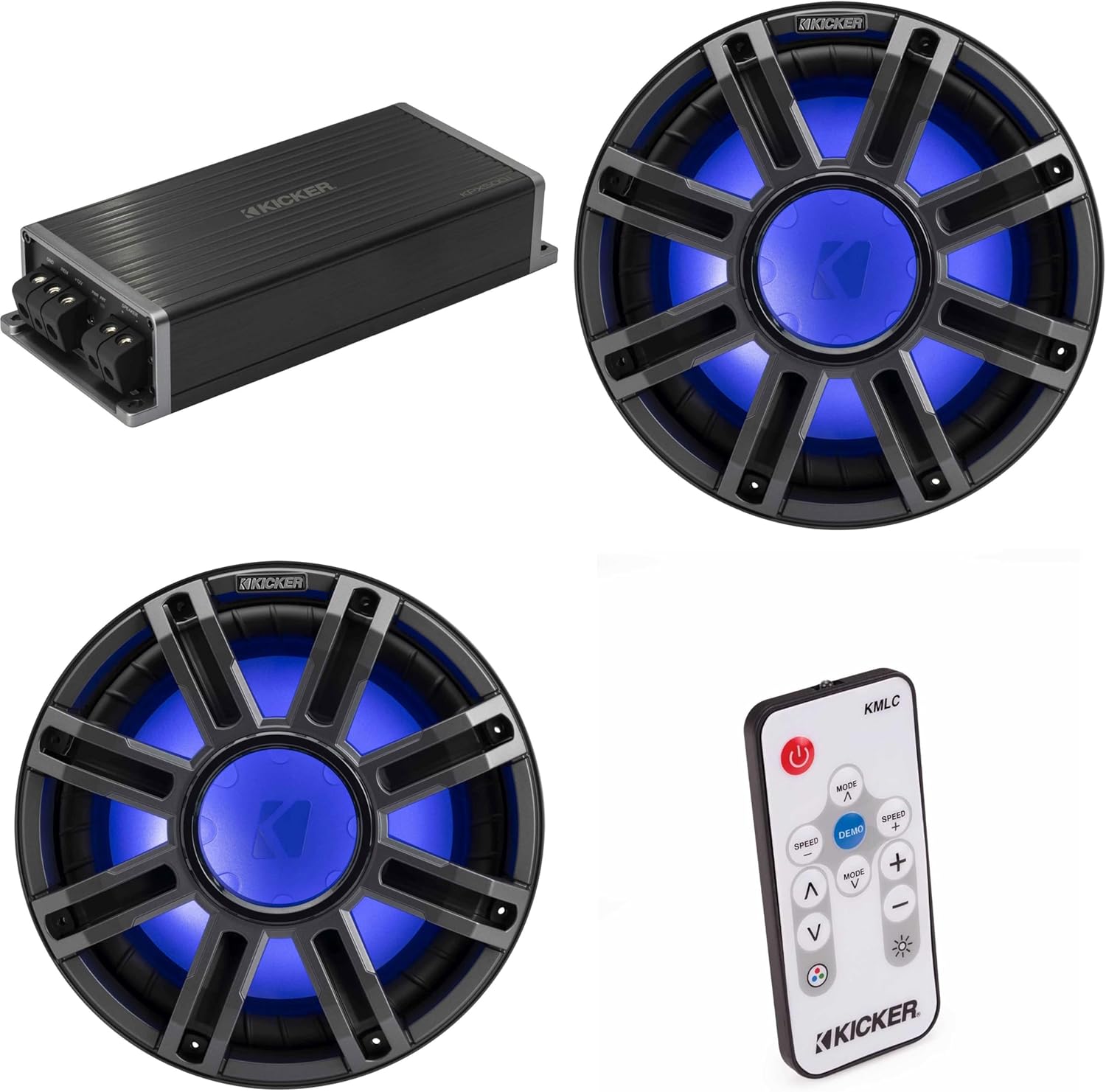 Kicker Marine KPX500.1 Powersports Amp & (2) 12" 4 Ohm Premium Marine Subwoofer (Charcoal Grill) Includes LED Remote