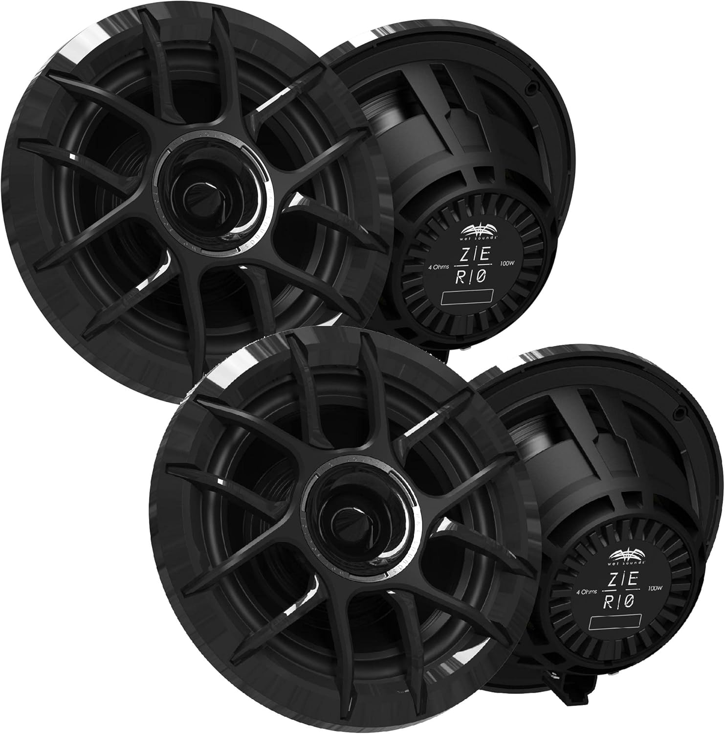 Wet Sounds Zero Series - 2 Pairs ZERO-6-XZ-B Black 6.5" Neodymium Powersport & Marine Speakers with Horn-Loaded Titanium Tweeters, Pair