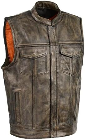 Milwaukee Men's Distressed Brown Motorcycle Son of Anarchy Style Leather Vest W/Gun Pocket (3XL Regular)