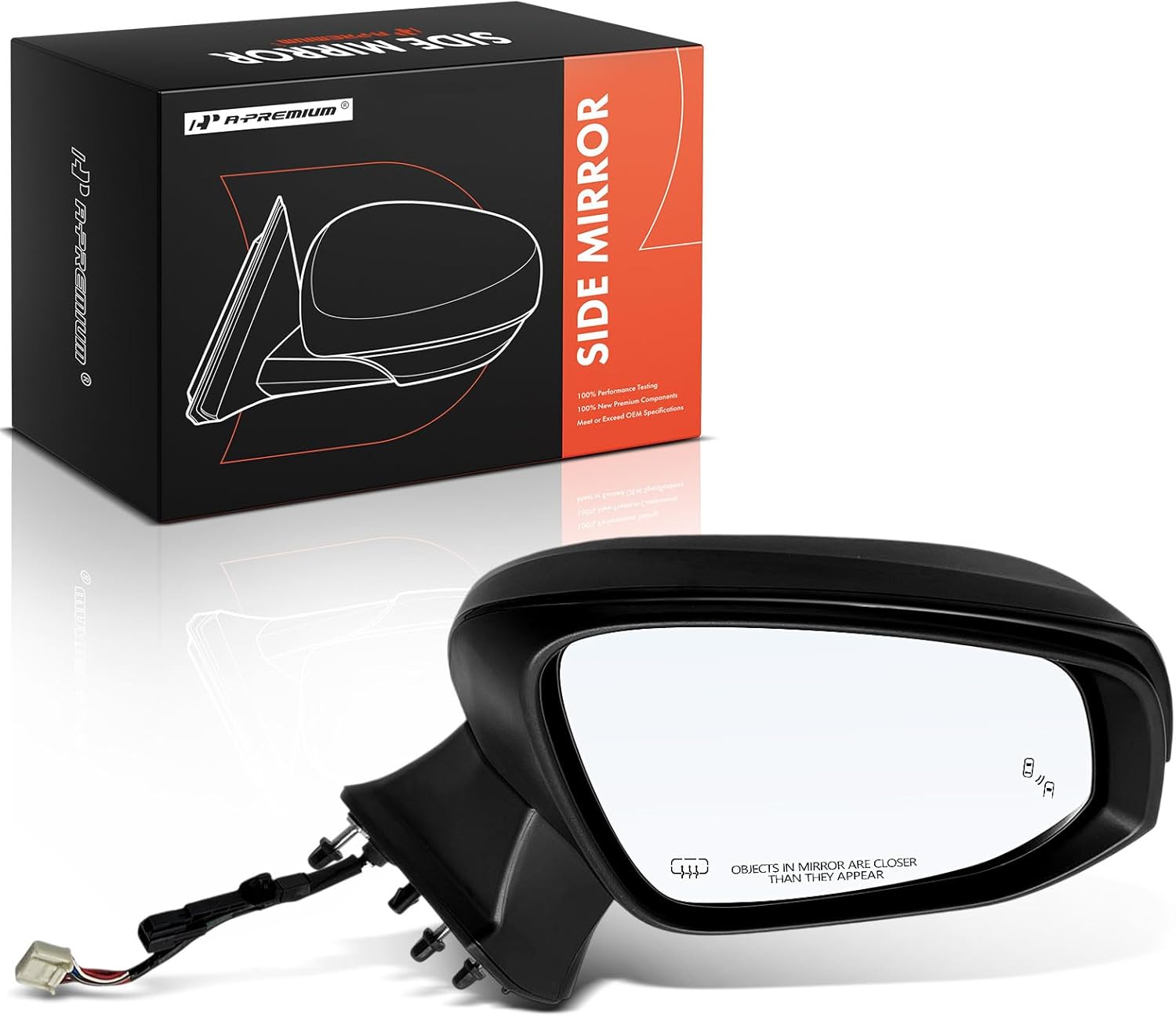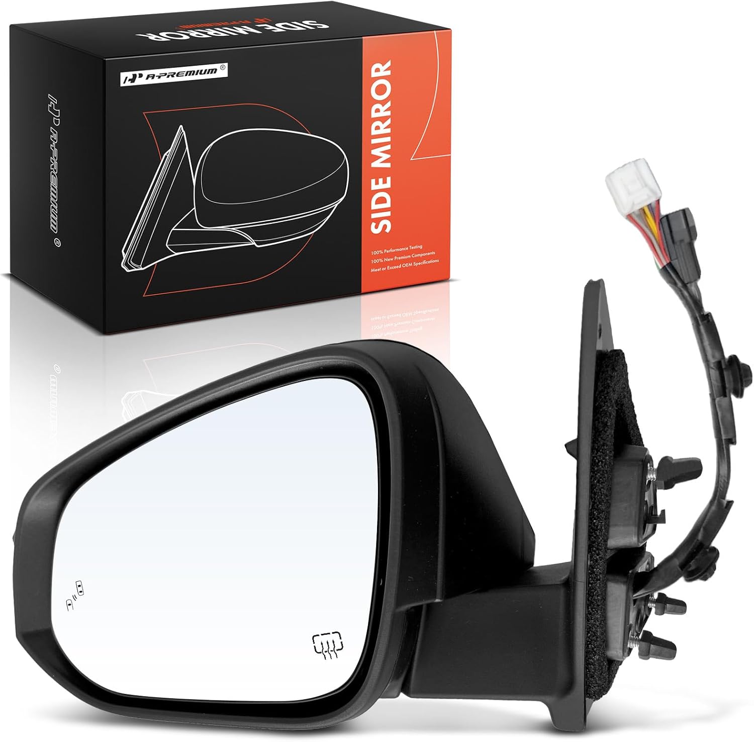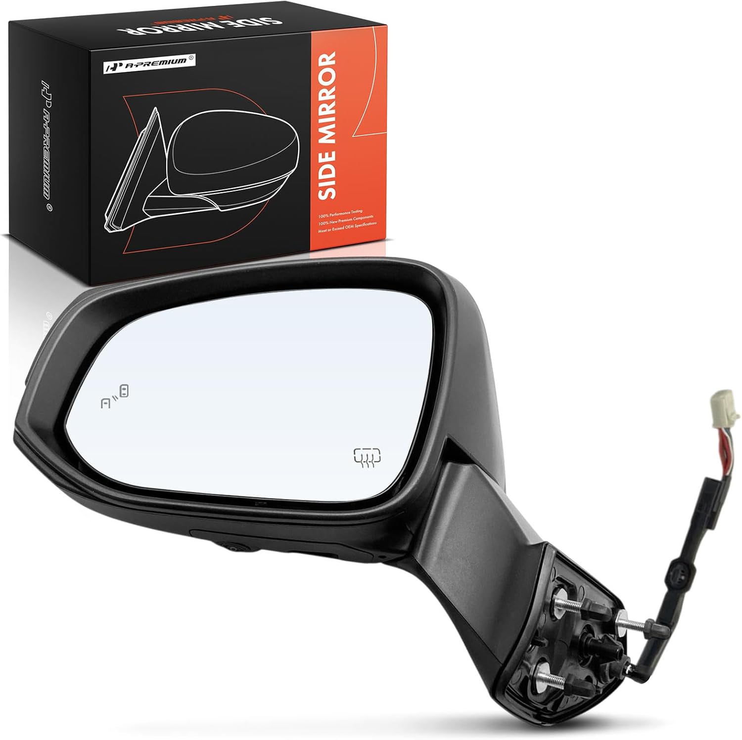 A-Premium Passenger Side Power Door Mirror - Compatible with Toyota Highlander 2020-2021 - Heated Manual Folding Black Outside Rear View Mirror with Turn Signal Puddle Light and Blind Spot Detection