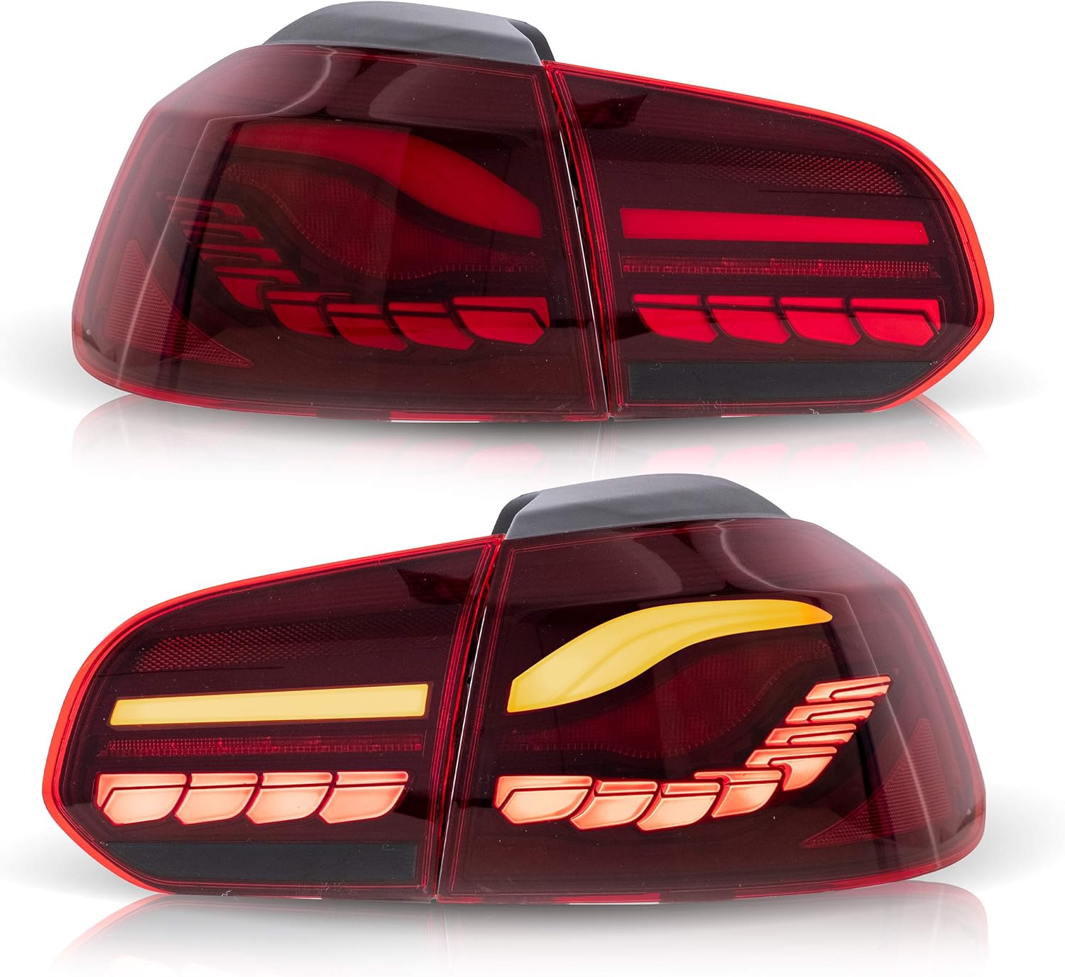 VLAND Tail lights Assembly Fit for Golf 6 2010-2014, Rear Lamps with Dragon Scales Dynamic DRL, Back light w/Fog Lights & Sequential Turn Signal, Red