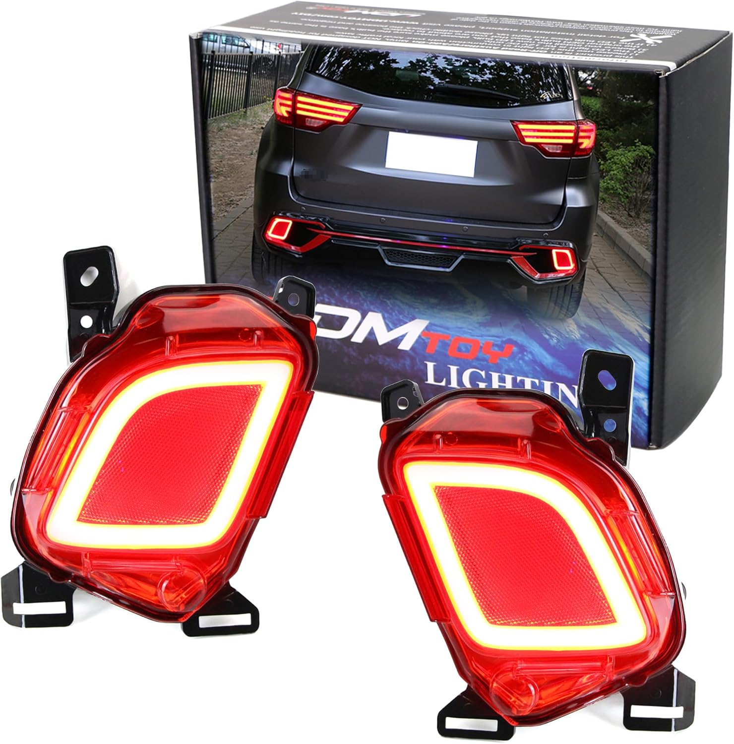 iJDMTOY Red Lens 3-In-1 LED Rear Fog Light Assembly Compatible With 2014-2019 Toyota Highlander, JDM Style LED Assy Functions as Rear Fog Lamp, Brake Light & Bumper Reflector