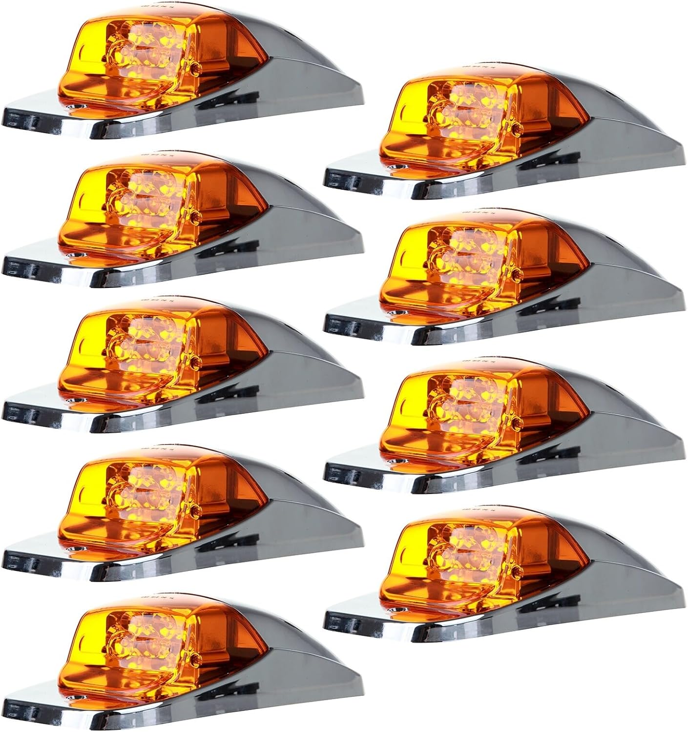 9x Truck Cab Marker Light 17 LED w/Chrome Amber Top Roof Running Lights Truck Trailer Light Replacement for Peterbilt/Kenworth/Freightliner/Mack Truck Trailer