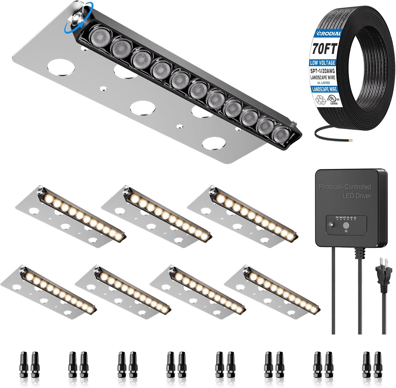 5W Low Voltage LED Landscape Lighting Kit, Outdoor Wall Step Deck Lights, Hardscape Lighting, Retaining Wall Lights with Sensor Transformer, 8 Inch, Aluminum, 12-24V AC/DC, IP68, 2700K, 8 Pack