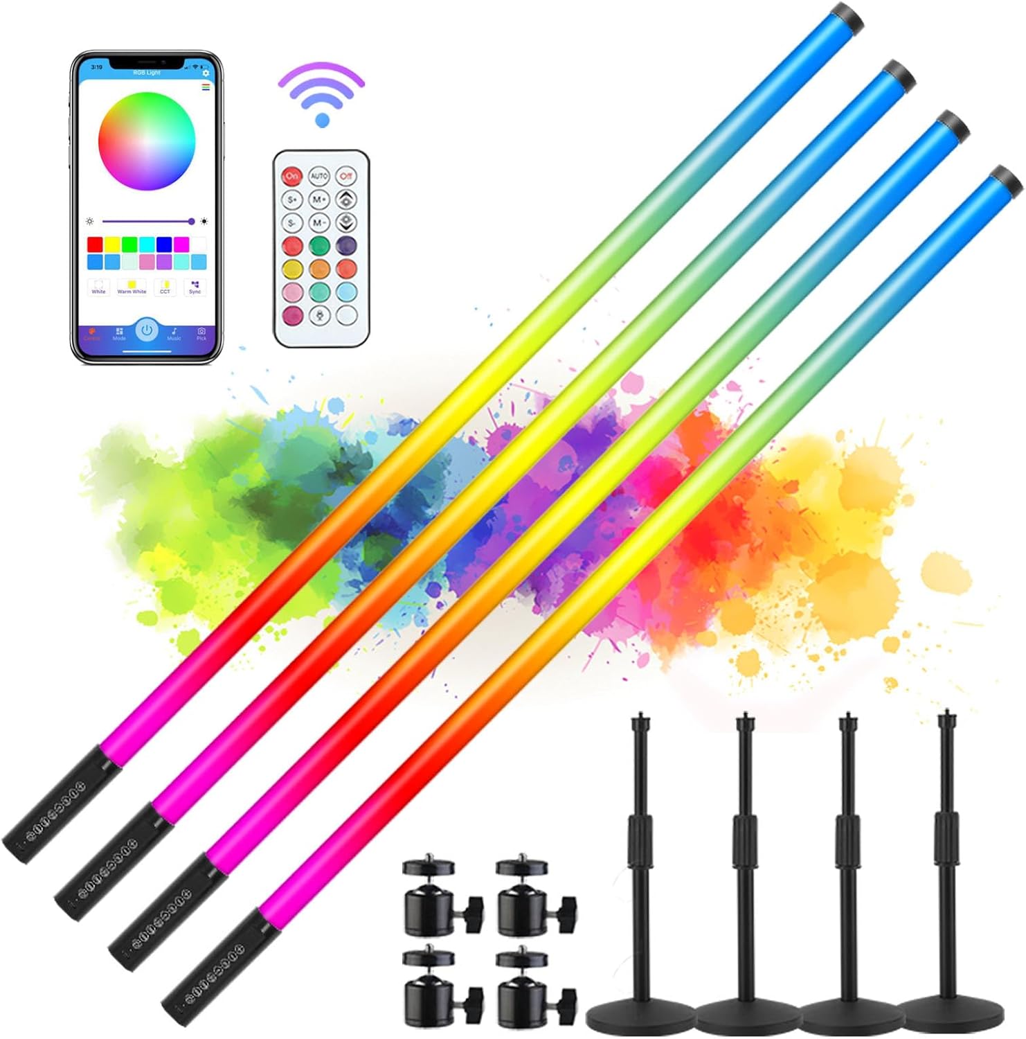 4Pack Smart APP Control 4ft RGB Neon Tube Light Bar Stand 5000mAh Rechargeable Magic LED Mood Light Stick Full Color 2700-6500K CCT for Video Shooting Wedding Dance DJ Stage Party Event