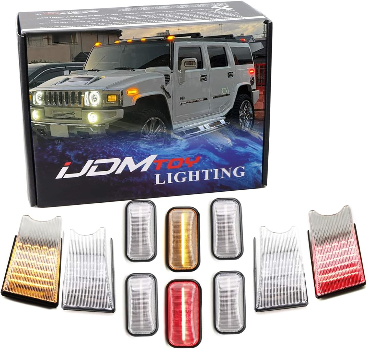 iJDMTOY 10pc Clear Lens Amber/Red Full LED Cab Roof Marker Light Kit Compatible With 2003-2009 Hummer H2 SUT, Replace OEM Red/Amber Lens Lamps/Bulbs
