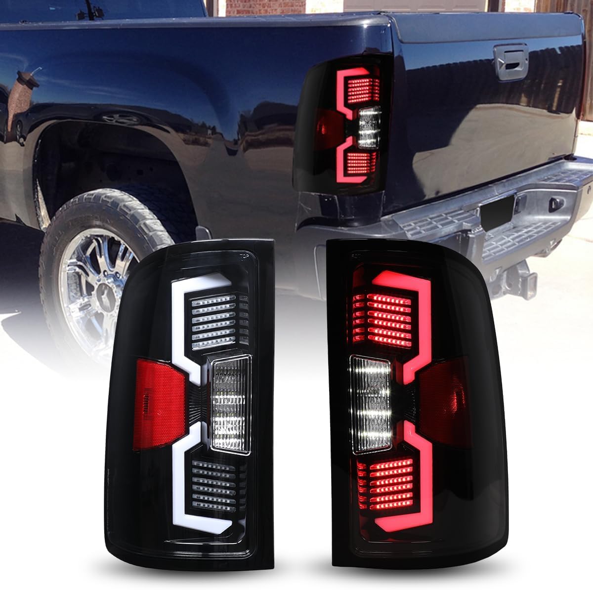ROXX Tail Lights Assembly For 2007-2013 GMC Sierra 1500/2007-2014 GMC Sierra 2500 3500,Tail light assembly pickup truck brake light replacement,Rear Lamps Assembly Replacement,Clear Lens