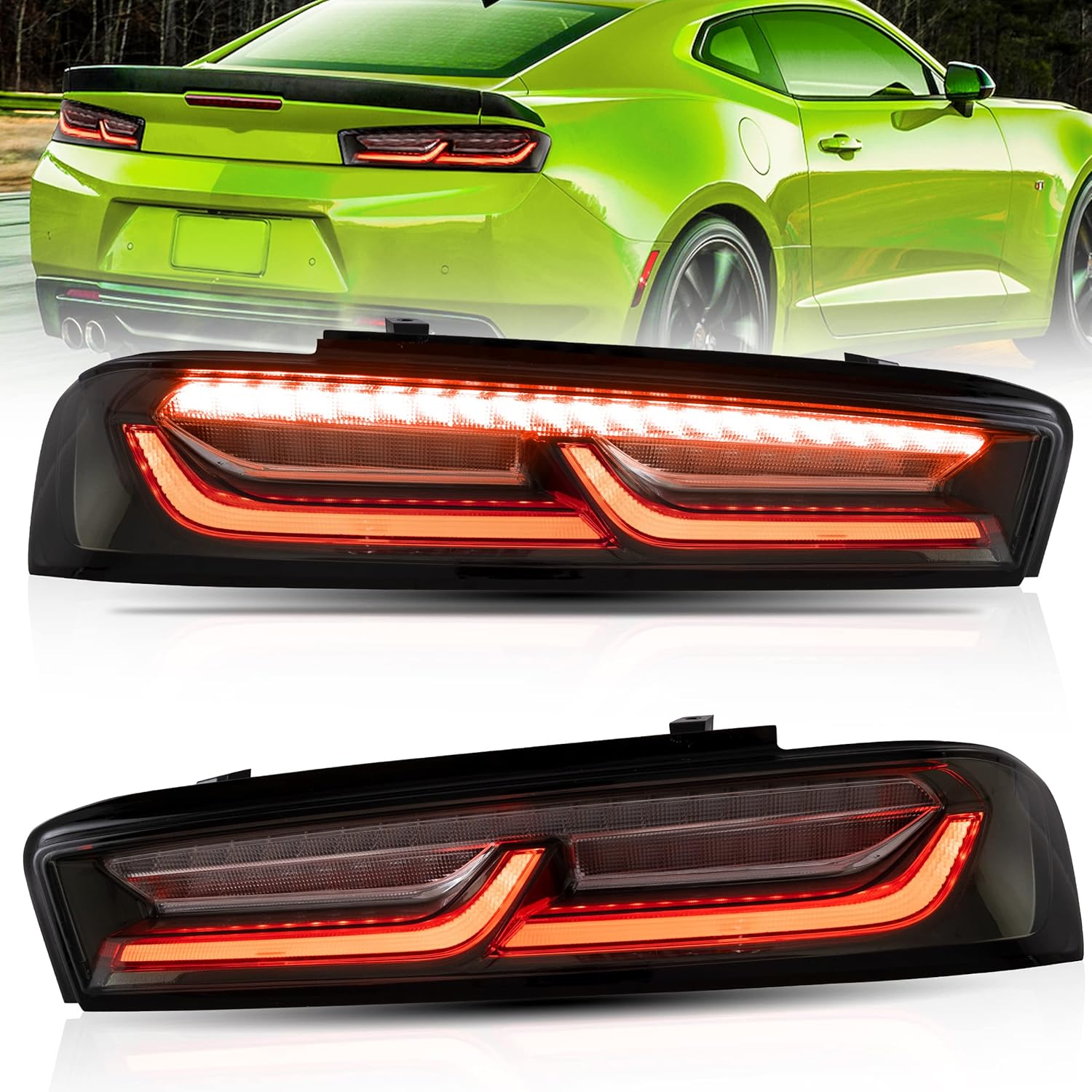 VLAND Taillights Assembly Fit for 2016-2018 Chevrolet Camaro 6th Gen(LS, LT, RS, SS, ZL1), Plug-and-play, Red Turn Signal, White and Smoked