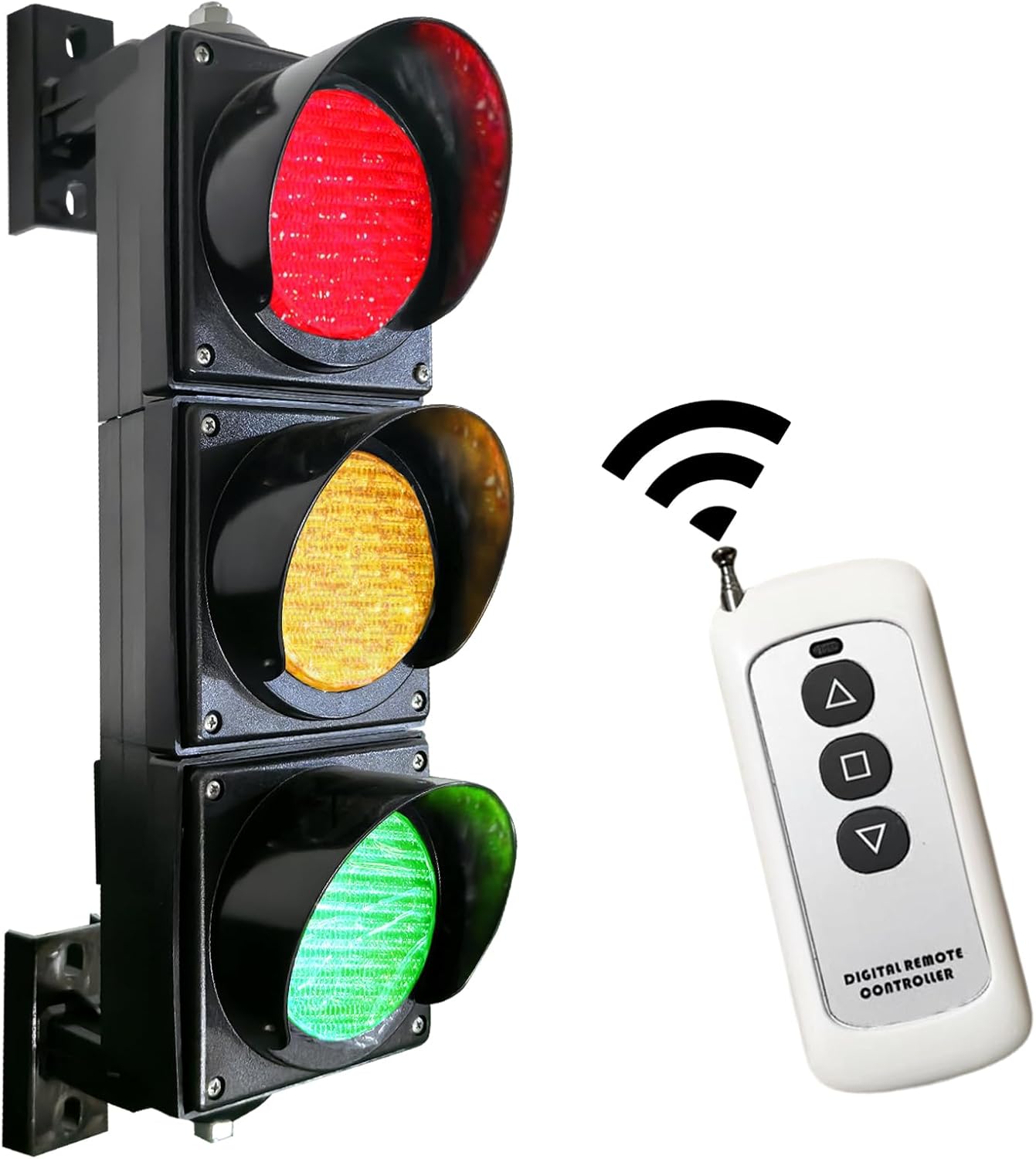 AC85-265V(4 inch) Traffic/Stop/Go Light Kit Lamp, Red Yellow Green Traffic Signal Light, Outdoor Industrial LED Traffic Lamp PC Housing Waterproof IP65 (103 Remote Control (No Battery)