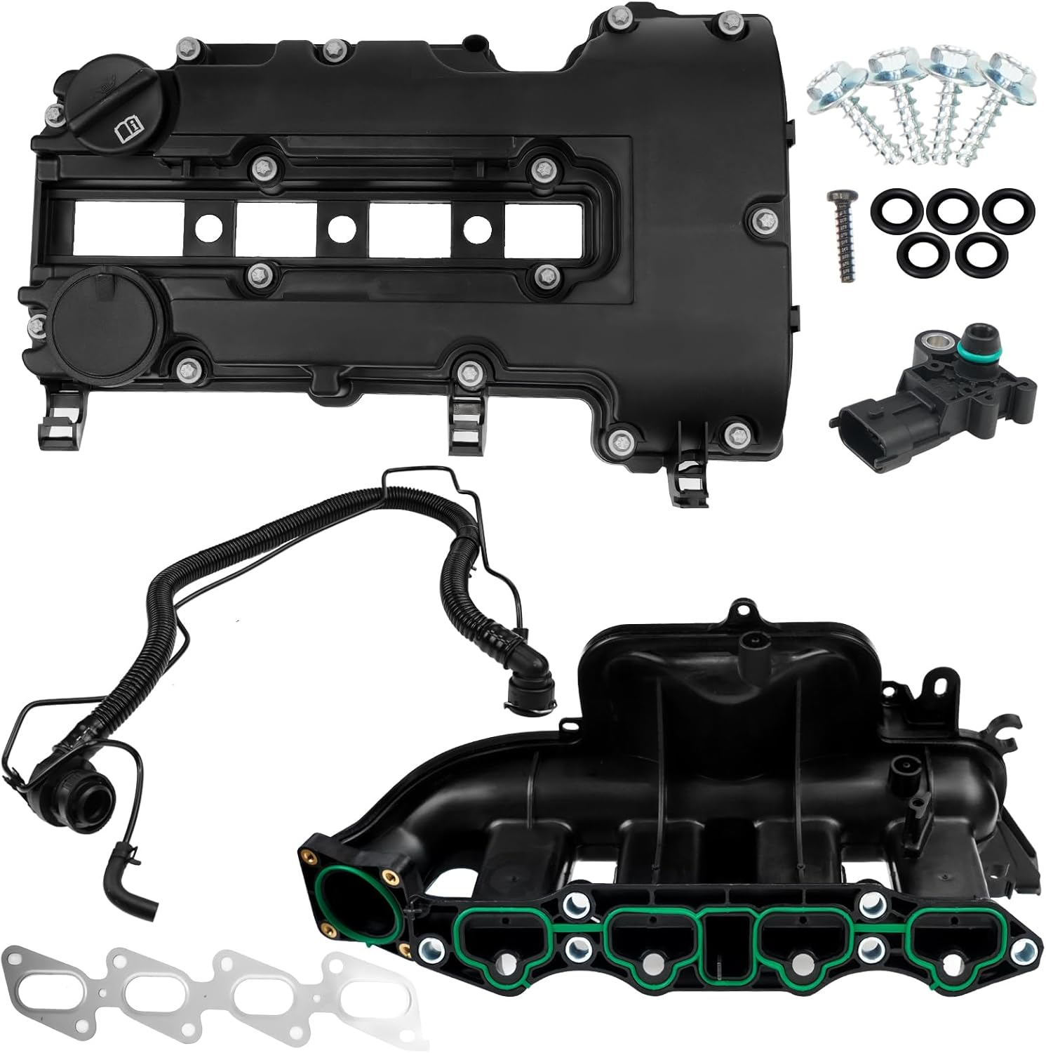 BHB Engine Intake Manifold and Valve Cover Kit Compatible with Chevy Cruze Sonic Trax Volt Buick Encore 1.4L 2011-2021 Replacement For 615-380 55573746 25198498 25200449 55577314