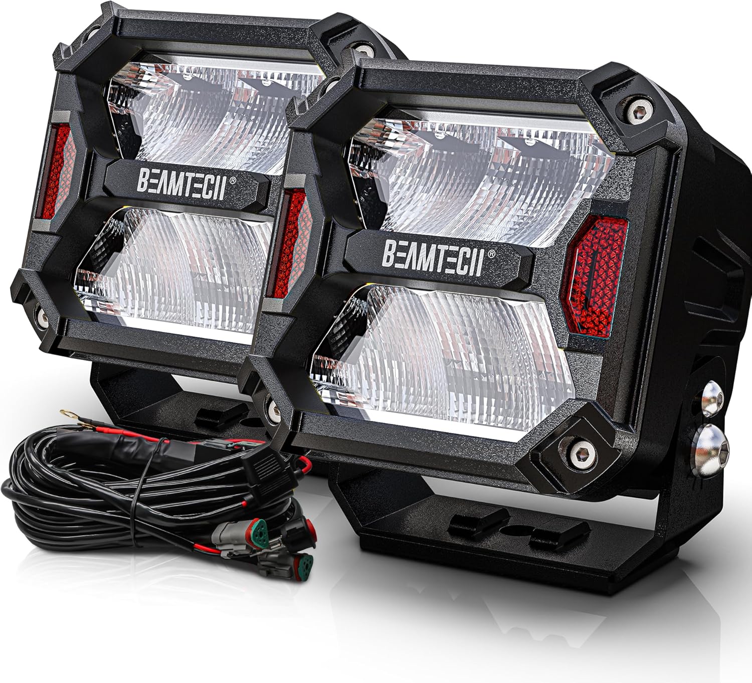 BEAMTECH 4 Inch 120W 14400LM White LED Pods Spot Flood Combo Work Light with Wiring Harness Driving Off Road Lights for Truck SUV ATV UTV