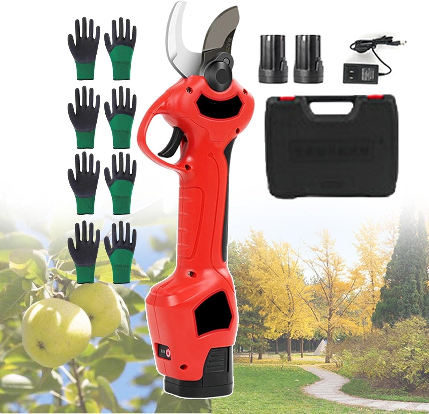 Electric Pruning Shears, Cordless Tree Branch Cutter, 2 x 16.8V Batteries Charger, Ergonomic Safety Design for Gardens Orchards