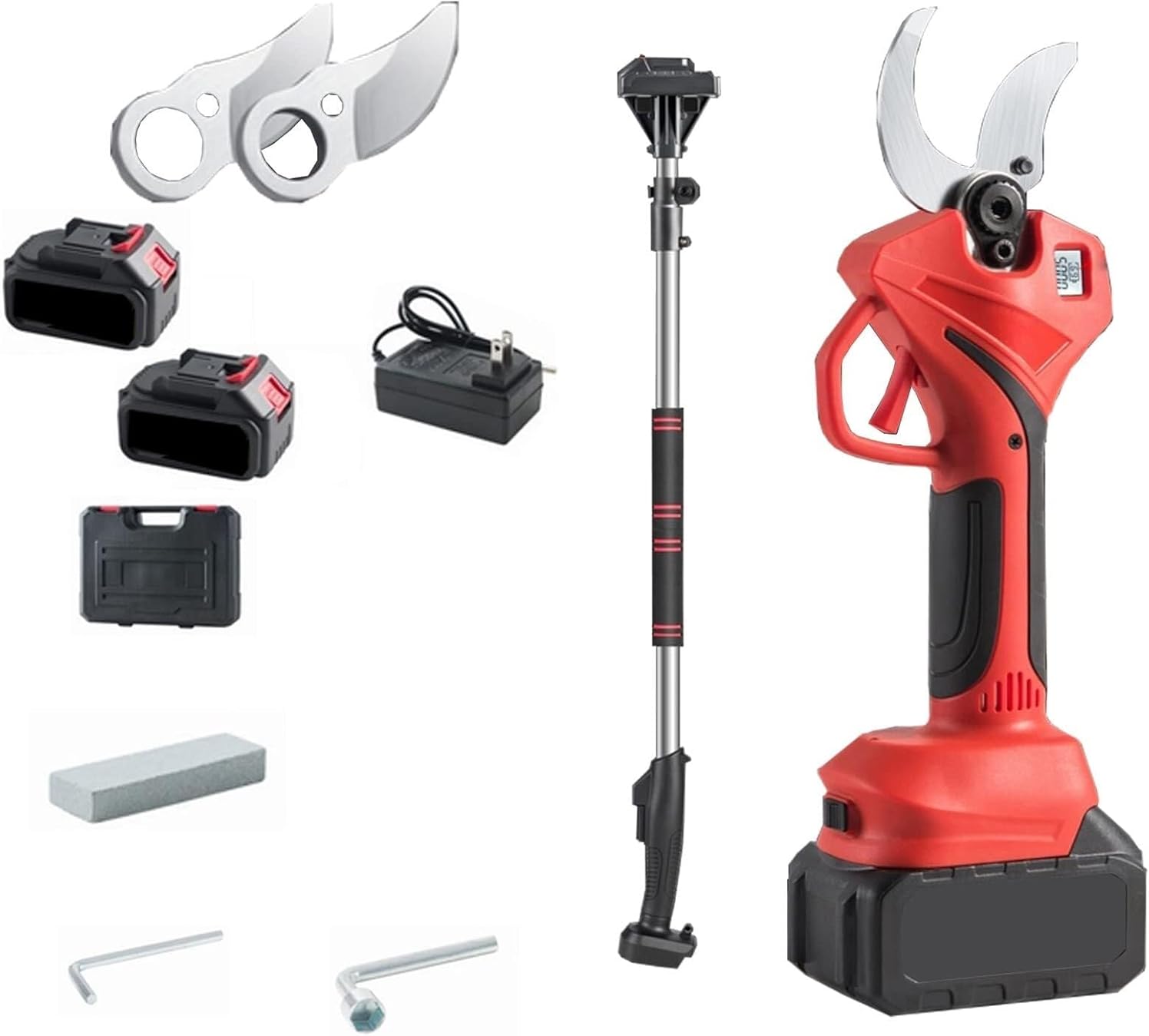 Extendable Tree Pruning Pruner, 21V Cordless Electric Shears with Extension Pole, LCD Display, 35mm Cut, 3 Batteries & Blades