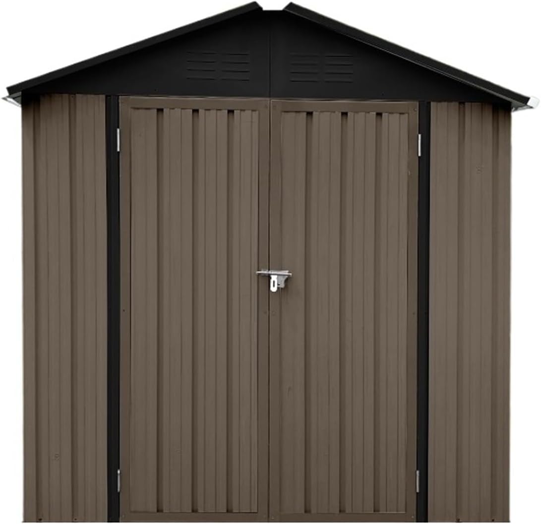 Outdoor Storage Shed Brown+Black Outdoor Storage Sheds 4ft×6ft Easy to Assemble for Outdoor Backyard Gardens Garden Tool House (A)