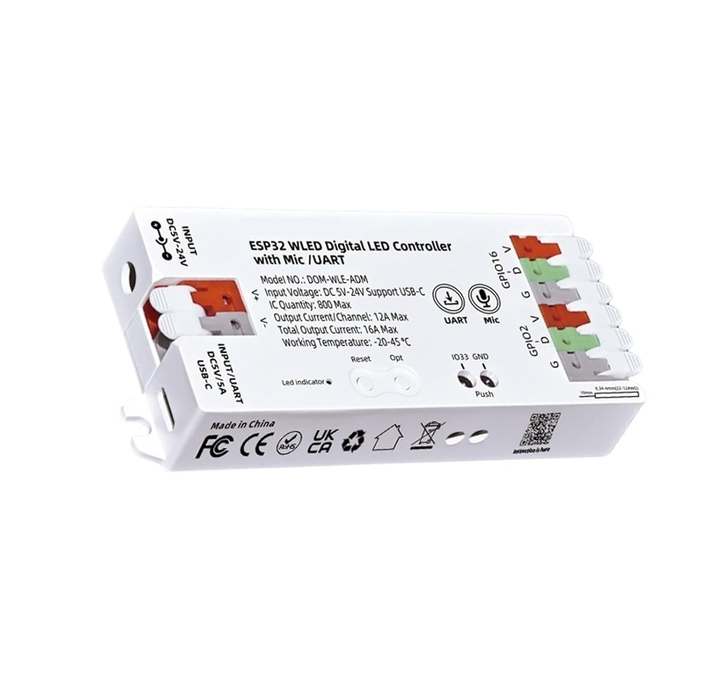 ESP32 WLED LED Controller with Built-in Microphone DIY Dynamic Mode UART Type-C