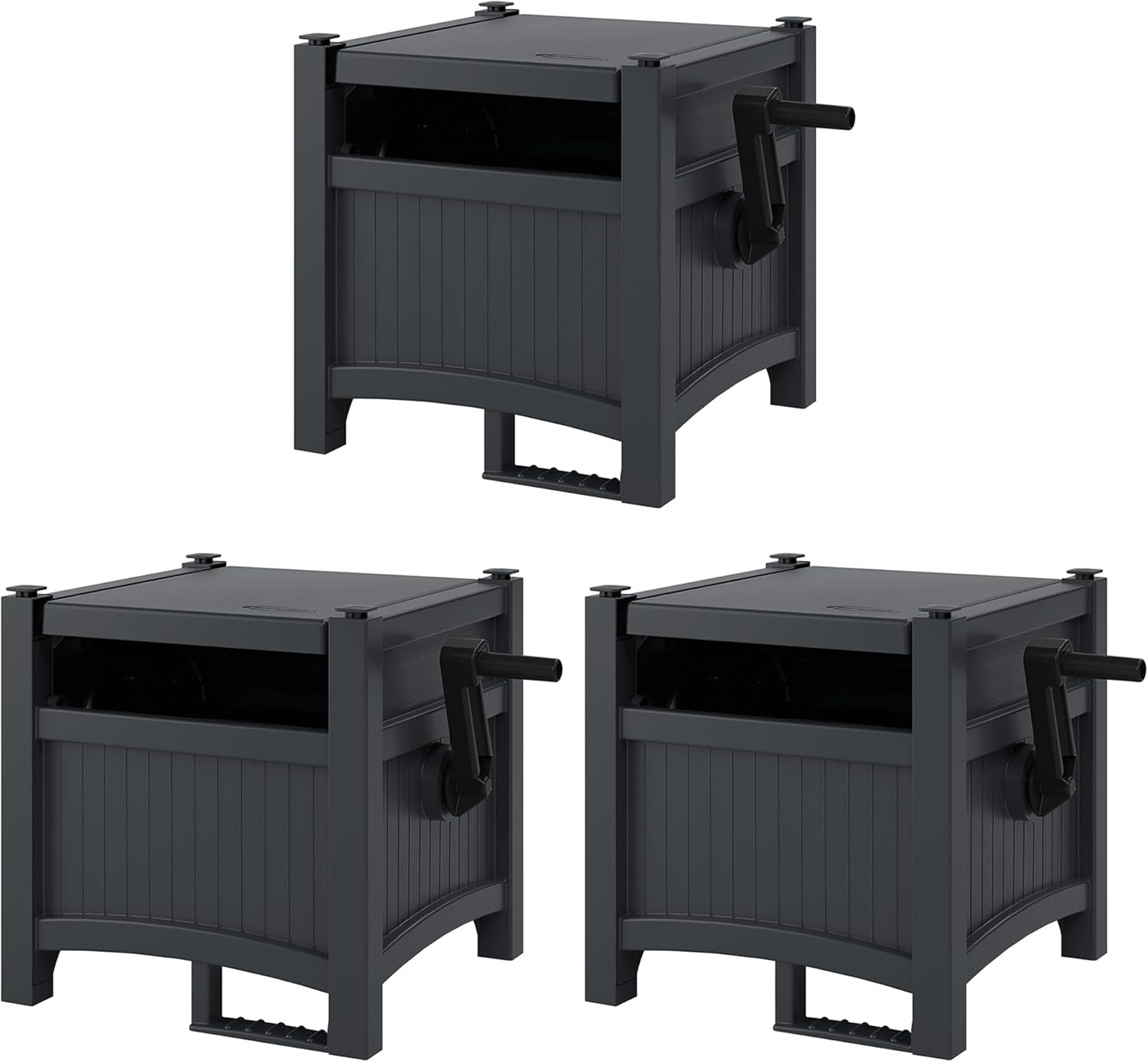 Suncast 3 Pack Hideaway Garden Hose Reel, Holds 100' of 5/8" Standard Vinyl Hose, Cyberspace Grey