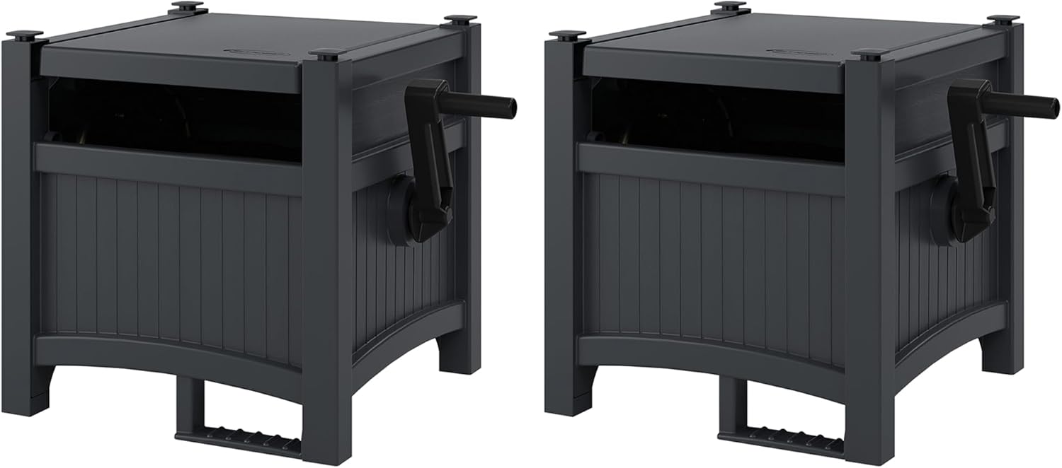Suncast 2 Pack Hideaway Garden Hose Reel, Holds 100' of 5/8" Standard Vinyl Hose, Cyberspace Grey