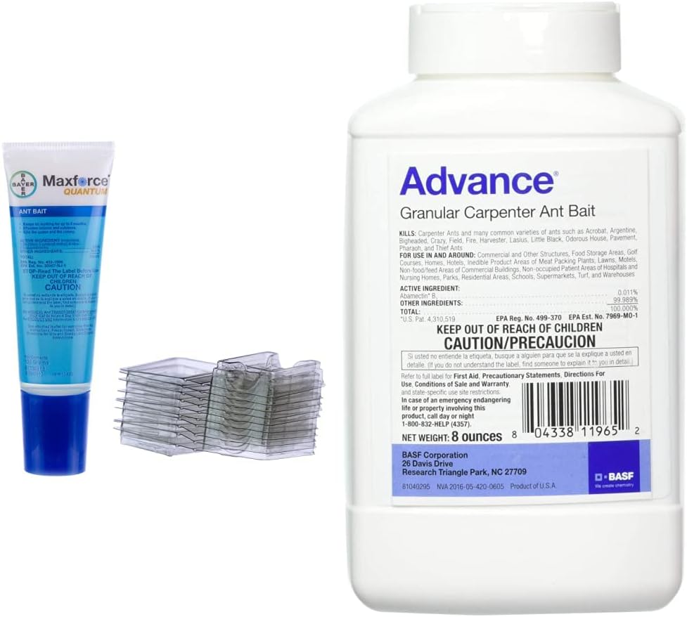 BASF Advance Carpenter Ant Bait (8oz, White) and Bayer Max Force Fleet Ant Gel (Light Yellow)