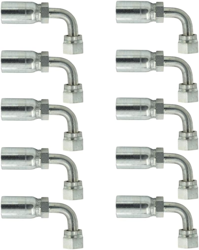 3/8" Hose x 1/2" Female ORFS Swivel 90 Degree Corner/Elbow Hydraulic Hose End Crimp Fitting | FFX90-06-08 (10-PACK)