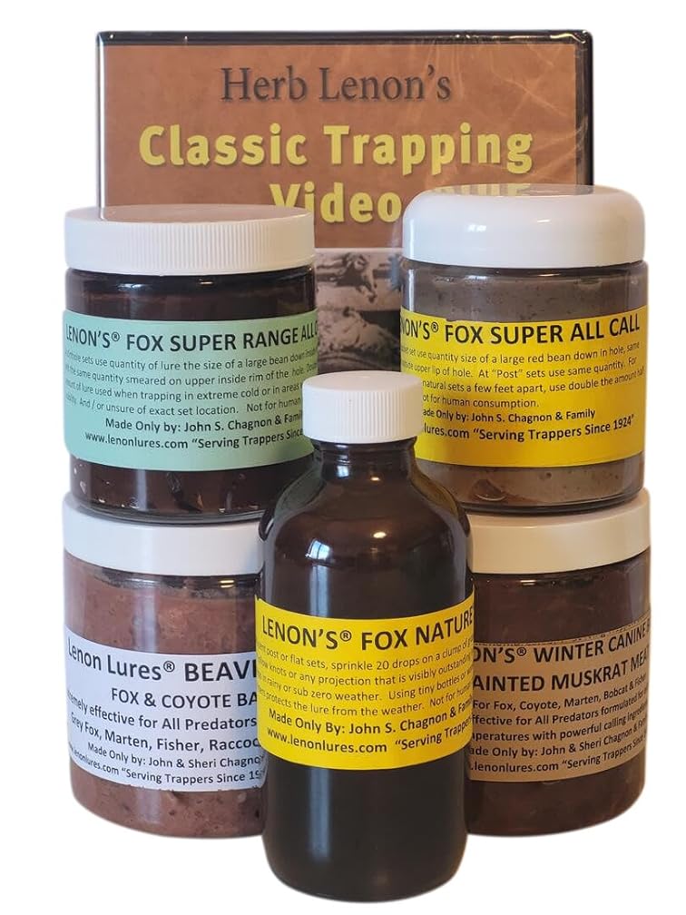 Lenon Fox Lure Package - 4 oz Lures, 8 oz. Baits and Classic Herb Lenon Trapping Dvd