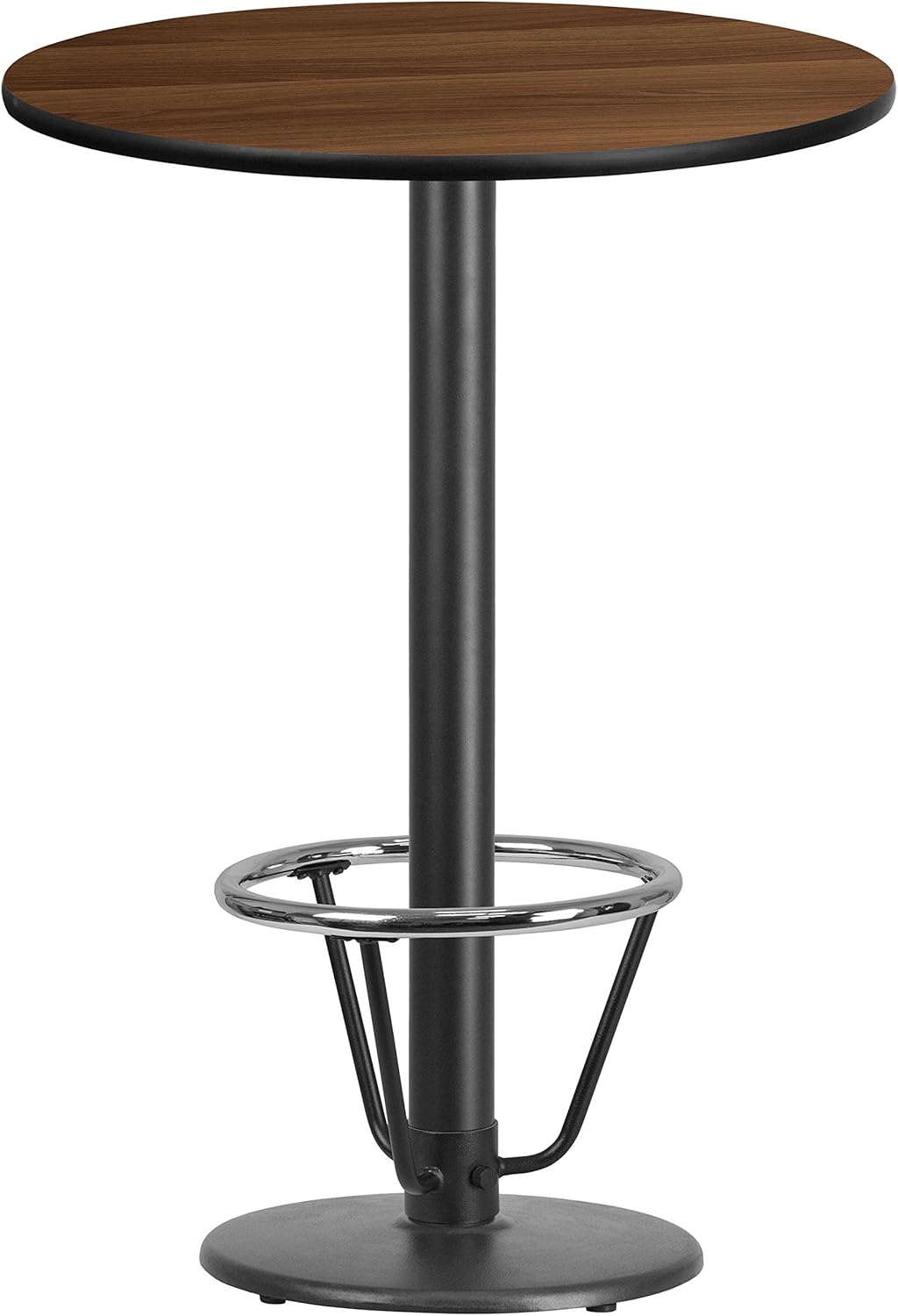 Flash Furniture 30'' Round Walnut Laminate Table Top with 18'' Round Bar Height Table Base and Foot Ring